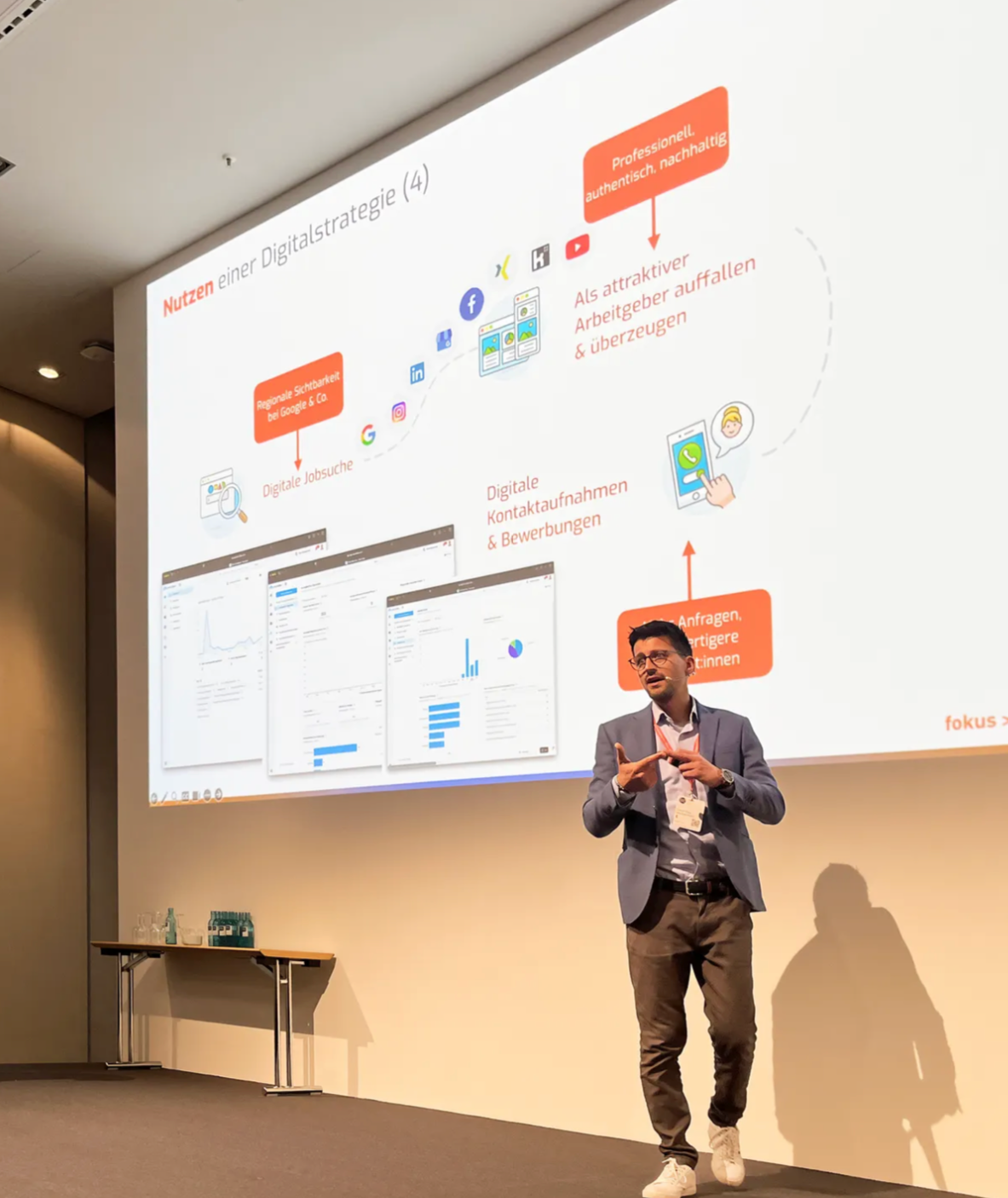 Um Ihre Recruiting-Strategien und -Maßnahmen gezielt nach vorne zu bringen, ist der erste Schritt ein klarer Blick auf Ihre Potenziale: Was macht Sie als Arbeitgeber unverwechselbar? Wie können Sie Mitarbeitende langfristig binden? Und wie erreichen Sie digital genau die Menschen, die zu Ihnen passen?
