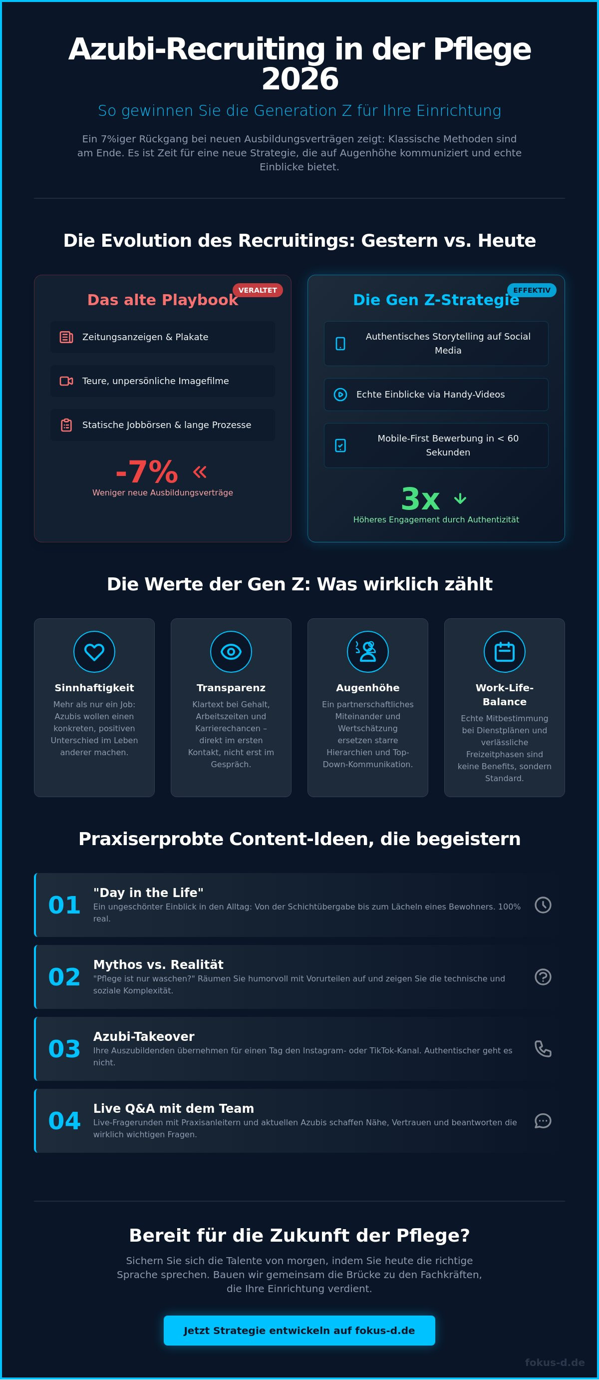 - Erfahren Sie, warum authentisches Storytelling und die spezifischen Erwartungen der Gen Z das klassische Ausbildungsmarketing in der Pflege im Jahr 2026 ablösen.