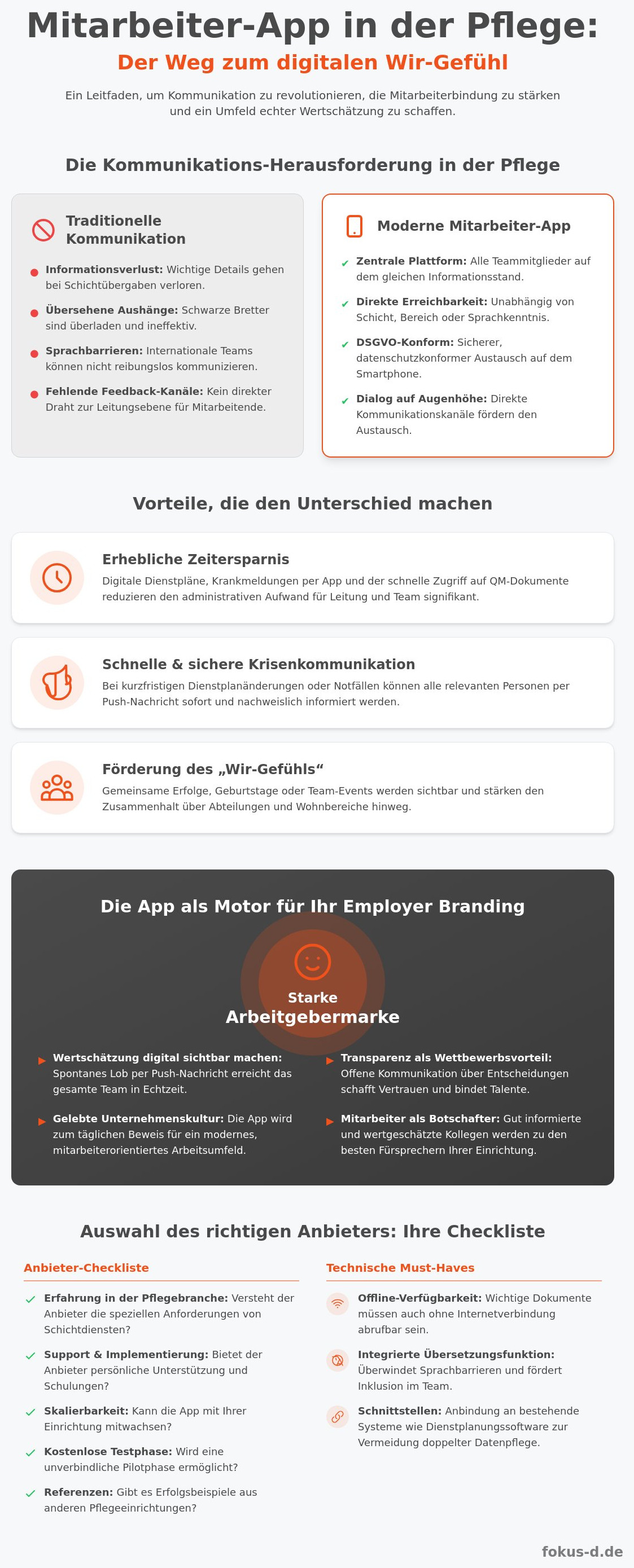 Eine moderne Mitarbeiter-App schlägt hier die entscheidende Brücke. Sie bringt alle Teammitglieder auf den gleichen Informationsstand, unabhängig von Schicht, Wohnbereich oder Sprachkenntnis. Die Einführung einer Mitarbeiter-App im Pflegeheim ist daher kein reines IT-Projekt, sondern ein strategischer Schritt, um Transparenz zu schaffen, Vertrauen aufzubauen und jeden Einzelnen wertzuschätzen.