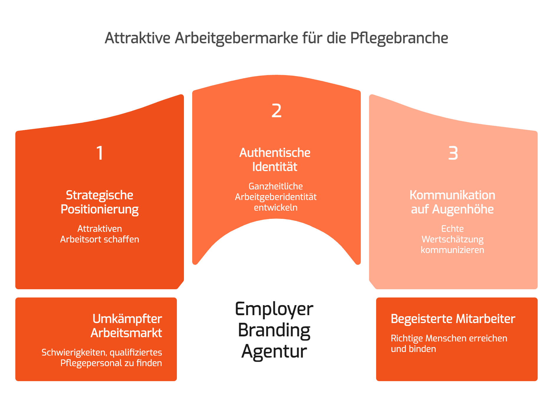 Eine starke Arbeitgebermarke in der Pflege und Sozialwirtschaft ruht auf drei zentralen Säulen, die untrennbar miteinander verbunden sind: