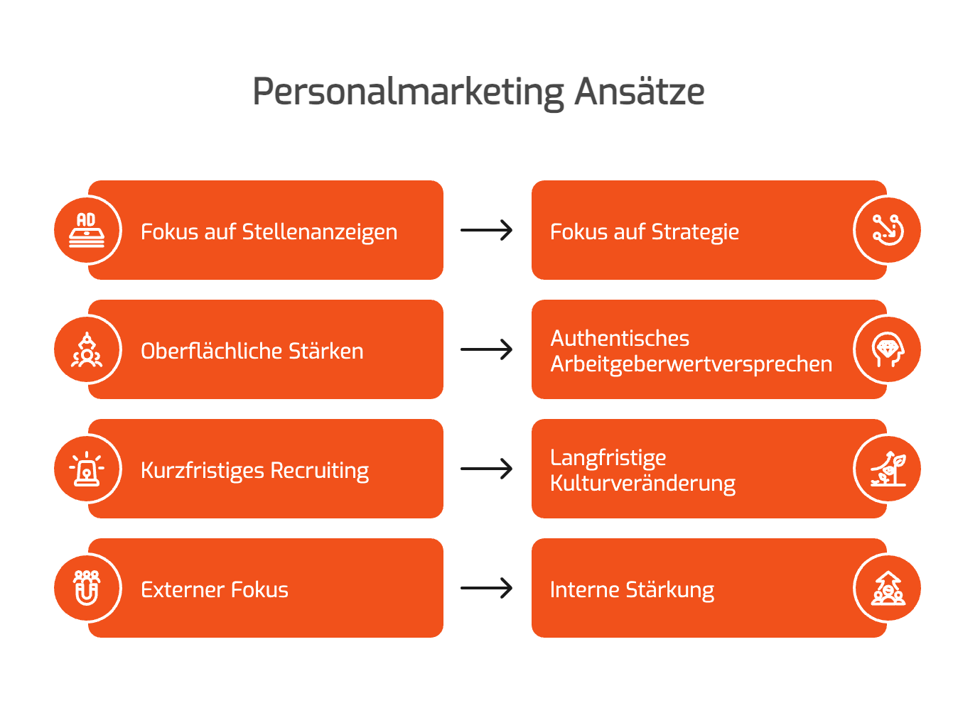 Nur wenn diese drei Säulen strategisch aufeinander abgestimmt sind, entsteht ein starkes Leitbild für nachhaltiges Recruiting.