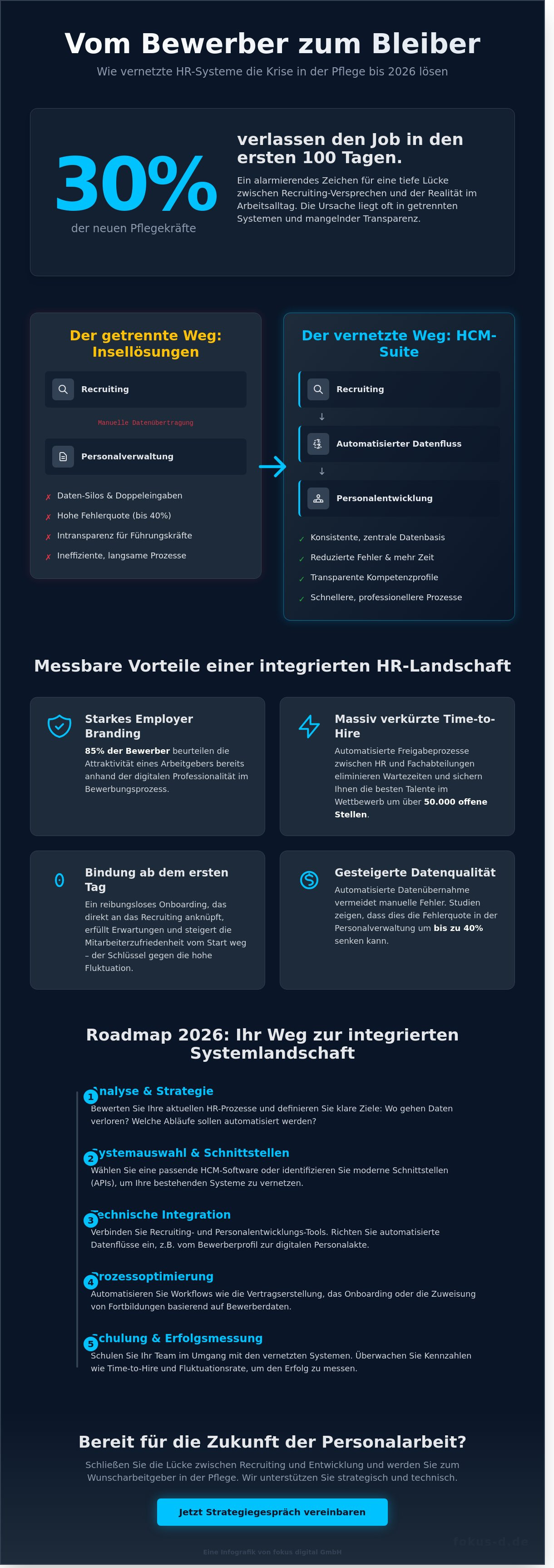 - Nutzen Sie unsere Roadmap 2026, um in fünf klaren Schritten Ihre Software-Landschaft zu optimieren und Ihre strategischen HR-Ziele präzise umzusetzen.