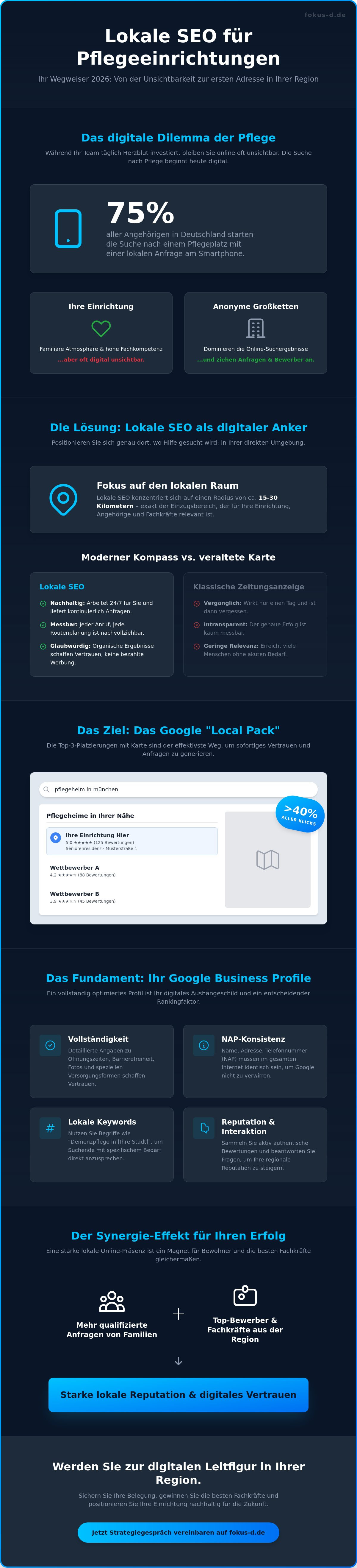 - Erfahren Sie, wie Sie durch gezielte lokale SEO für Pflegeinrichtungen zur ersten Anlaufstelle für Familien und Fachkräfte in Ihrem Einzugsgebiet werden.