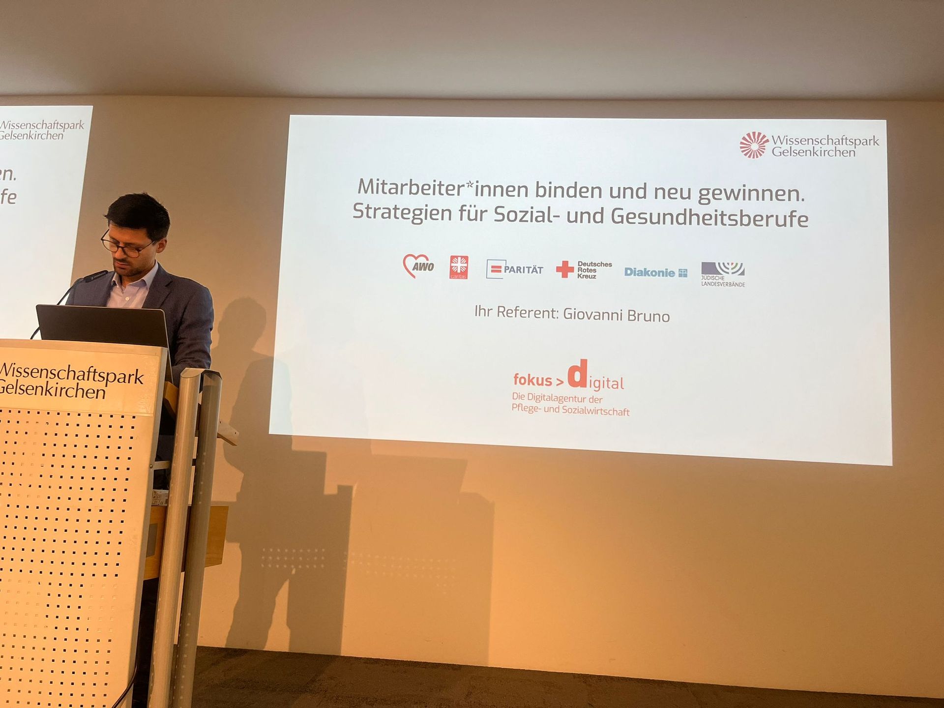 „Mitarbeiter*innen binden und neu gewinnen - Strategien für Sozial- und Gesundheitsberufe“ der Frage an, wie digitales Recruiting in der Pflege- und Sozialwirtschaft aussehen kann. Denn digitale Tools können nicht nur die Reichweite und Effizienz der Personalgewinnung steigern, sondern auch dazu beitragen, die Attraktivität der Sozial- und Gesundheitsberufe zu erhöhen. Durch innovative Ansätze können Betriebe gezielt Talente ansprechen und langfristig an ihre Organisation binden.