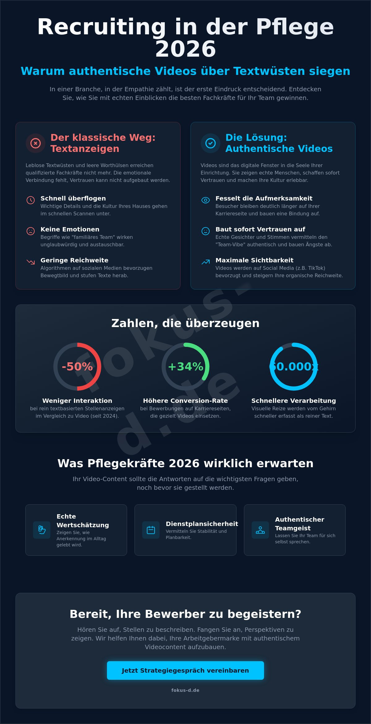 - Erfahren Sie, warum authentischer Videocontent zur Vorstellung des Pflegedienstes das entscheidende Fenster in Ihre Unternehmenskultur ist und passive Bewerber zu aktiven Interessenten macht.