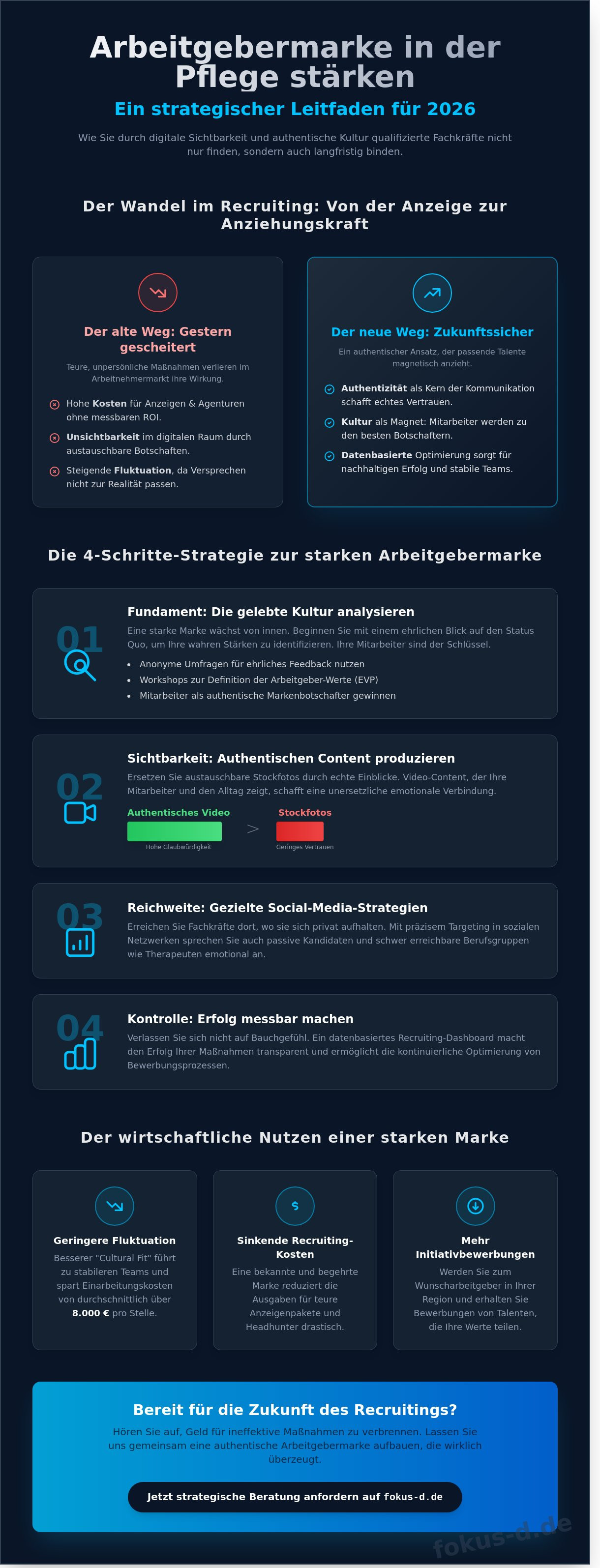Wir verstehen, dass Sie keine oberflächlichen Kampagnen brauchen, sondern eine Partnerschaft auf Augenhöhe, die den Wert Ihrer täglichen Arbeit widerspiegelt. In diesem Leitfaden für 2026 erfahren Sie genau, wie Sie durch authentisches Employer Branding und gezielte digitale Sichtbarkeit qualifizierte Fachkräfte gewinnen und diese auch langfristig an Ihr Unternehmen binden. Wir geben Ihnen eine klare Strategie an die Hand, die von der ehrlichen Positionierung Ihrer Marke bis hin zur messbaren Steigerung der Bewerberzahlen reicht, damit Ihr Team endlich wieder die Unterstützung bekommt, die es verdient.