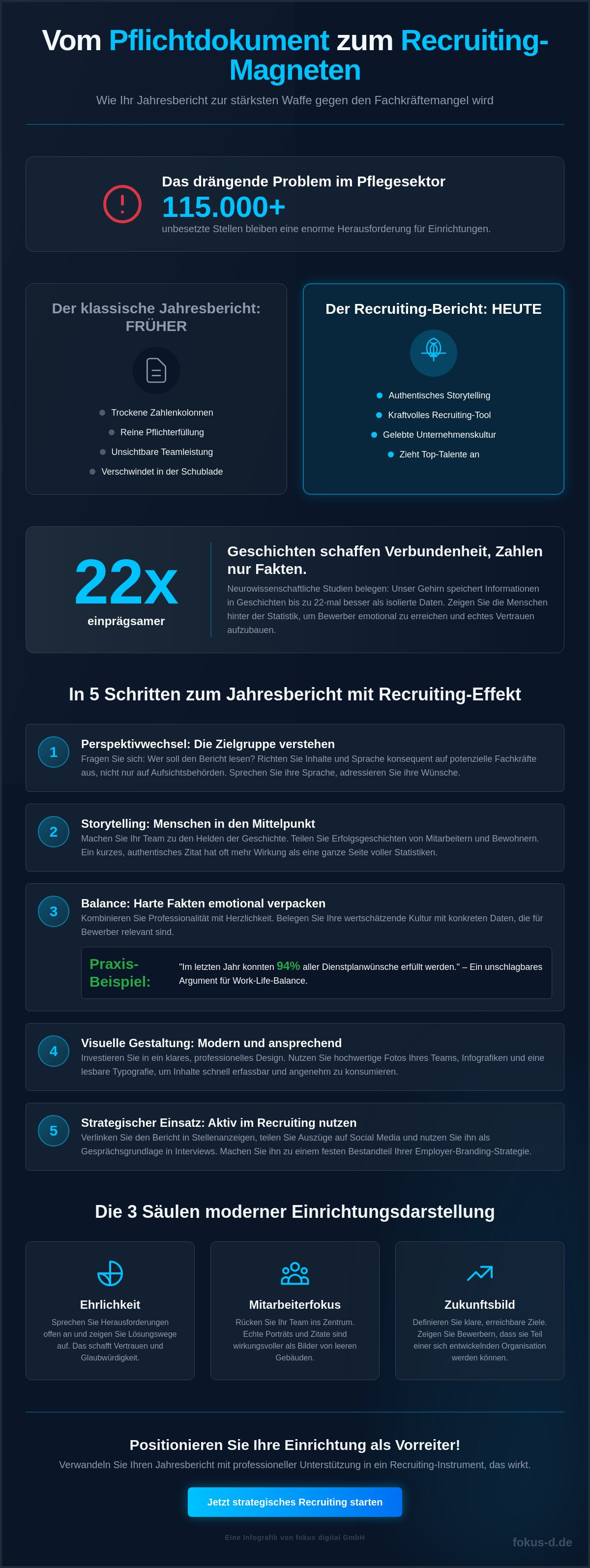 Was wäre, wenn Ihr mühsam erstellter Jahresbericht nicht in einer Schublade verschwindet, sondern zur wirkungsvollsten Visitenkarte für neue Fachkräfte wird? Die Frage, wie Jahresberichte die Einrichtung darstellen, entscheidet heute oft darüber, ob potenzielle Bewerber echtes Interesse entwickeln oder frustriert weiterklicken. Während laut aktuellen Daten des Instituts der deutschen Wirtschaft rund 115.000 Stellen in der Pflege unbesetzt bleiben, investieren viele Leitungen wertvolle Zeit in Tabellen, die am Ende kaum gelesen werden. Es ist schade, wenn die tägliche Herzlichkeit und die professionelle Leistung Ihres Teams hinter trockenen Zahlenkolonnen unsichtbar bleiben.