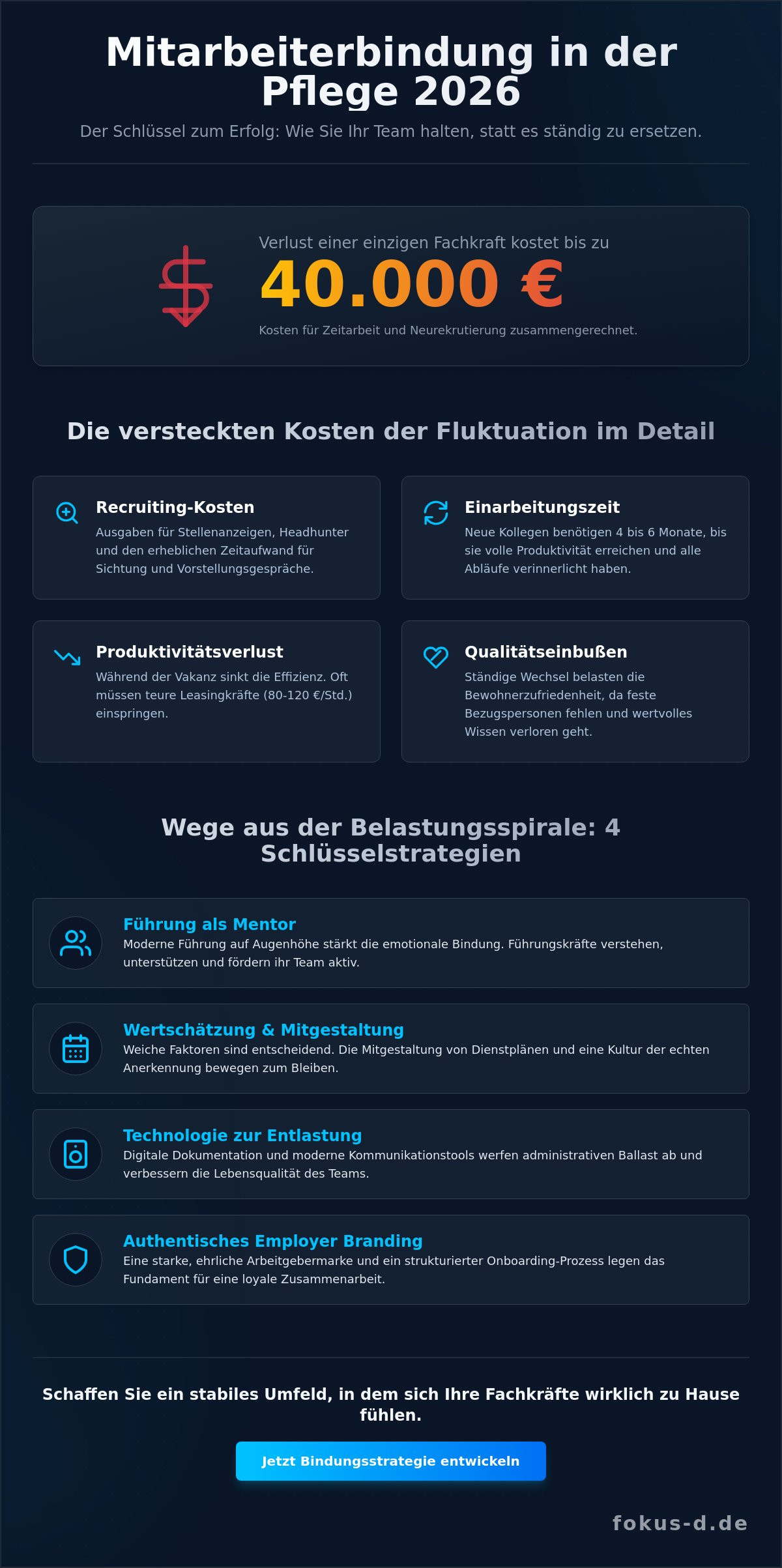 Laut aktuellen Marktanalysen kostet der Verlust einer einzigen qualifizierten Pflegefachkraft eine Einrichtung in Deutschland durchschnittlich bis zu 40.000 Euro, wenn man die Kosten für Zeitarbeit und Neurekrutierung zusammenrechnet. Diese enorme Summe verdeutlicht, dass die zentrale Herausforderung für das Jahr 2026 nicht allein im Finden, sondern vor allem darin liegt, wie man gute Mitarbeiter hält und langfristig motiviert. Sie wissen vermutlich selbst am besten, wie zehrend das ständige „Feuerlöschen“ bei kurzfristigen Kündigungen für das gesamte Team ist. Wenn das Stammpersonal durch Überlastung frustriert aufgibt, gerät die Versorgungsqualität schnell ins Wanken.