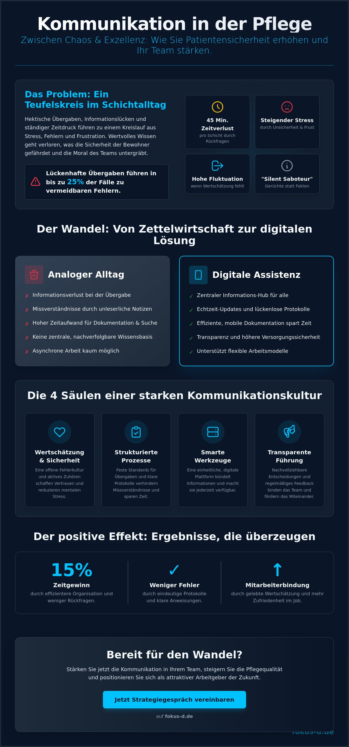 - Nutzen Sie unsere Schritt-für-Schritt-Anleitung, um bestehende Kommunikationsbarrieren in Ihrer Einrichtung zu identifizieren und feste Standards für einen reibungslosen Informationsfluss zu etablieren.